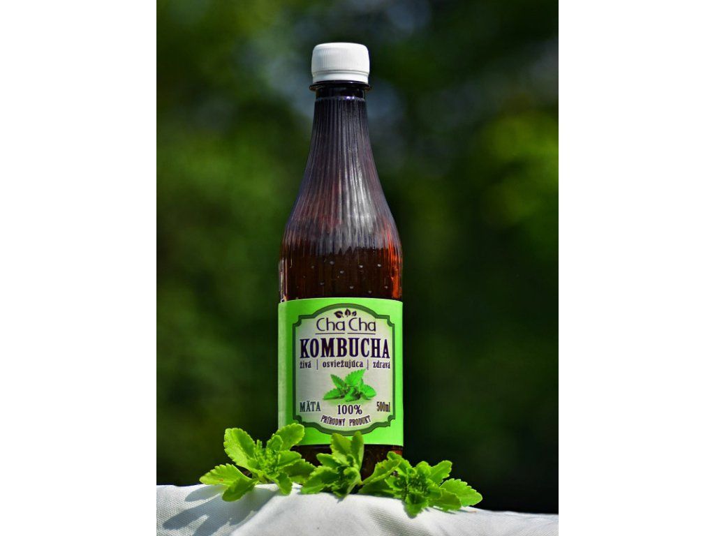 Zloženie: nálev z čierneho čaju (50%), mätový čaj (50%), sacharóza, kvasinkové kultúry a mliečne baktérie