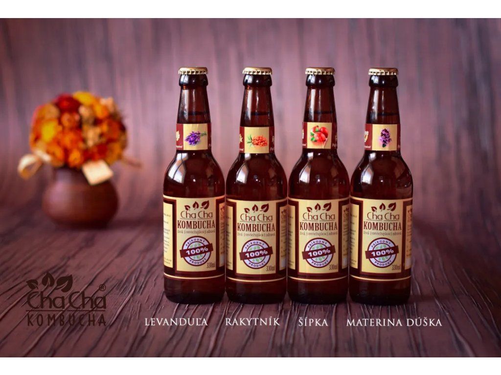 Zloženie: nálev z čierneho čaju (50%), čaj z materinej dúšky (50%), sacharóza, kvasinkové kultúry a mliečne baktérie
